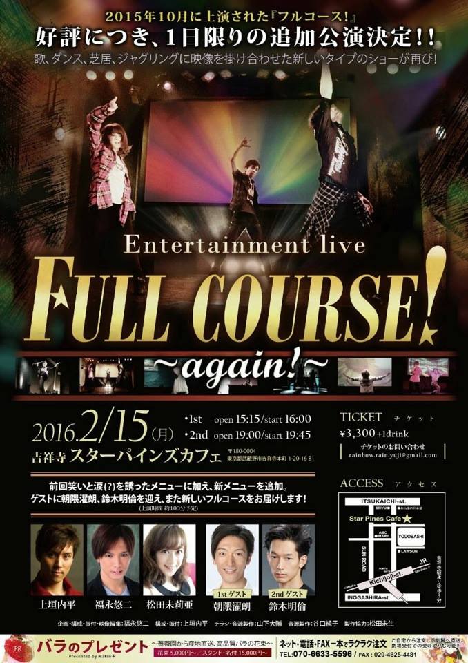 今月中旬に、音源制作のお手伝いをしたacter福永くんのエンターテインメントライブが行われます^^前回大変好評だったそうで、再演とのことです!凄いなぁ〜^^ご興味あれば、ぜひ!